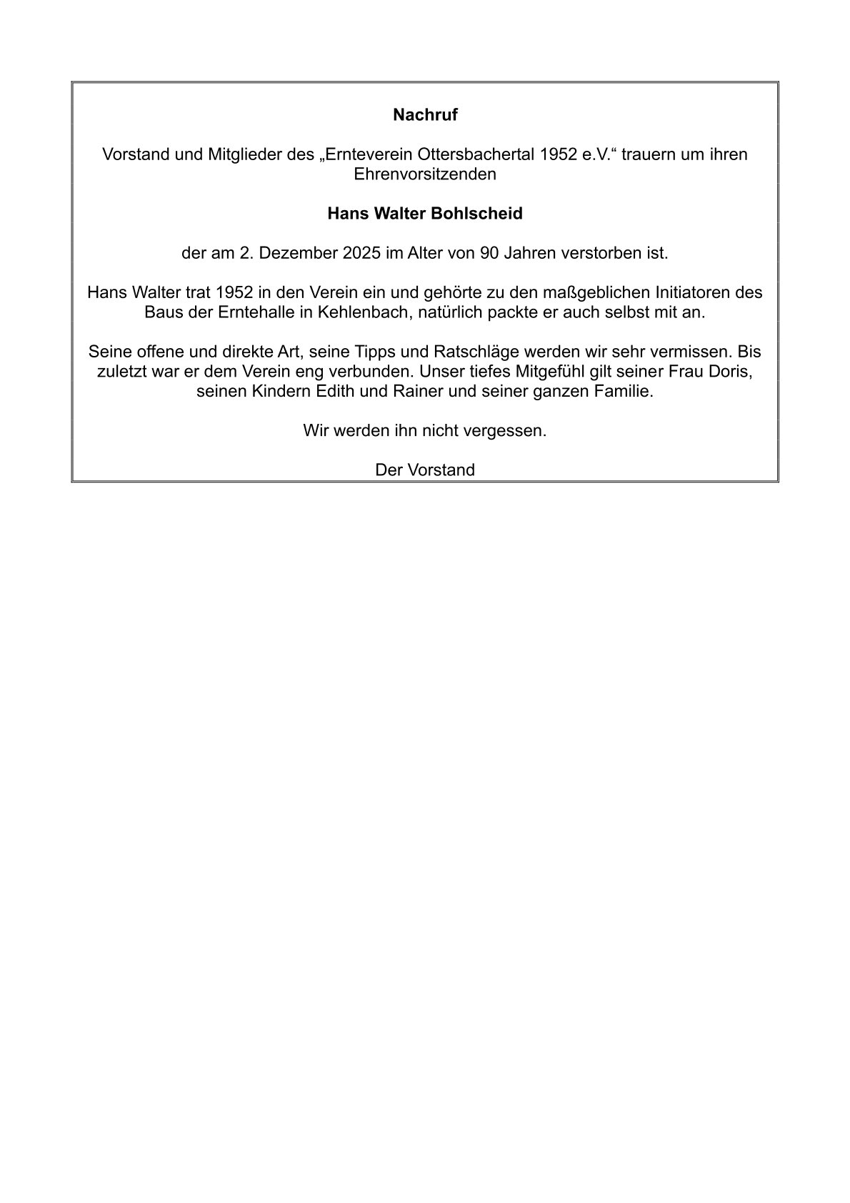 Neues vom Ernteverein 2025